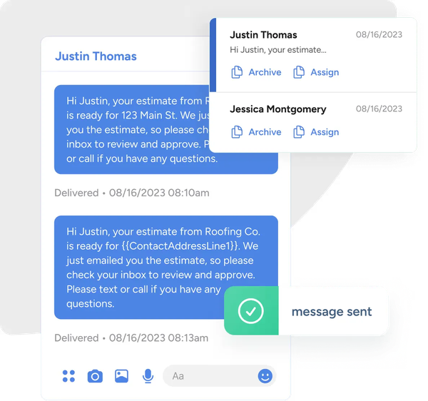 Text Messaging: Roofers can send and receive text messages from AccuLynx with its SMS tool. AccuLynx allows users to both message customers and team members from the same software to keep everybody in the know.