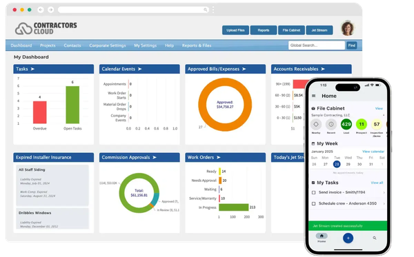 Customizable Dashboards: AccuLynx comes with pre-built, customizable dashboards that helps roofers keep track of management, sales, production, and team performance.