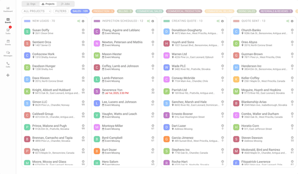 If the name didn’t give it away, Sunbase is a solar first CRM that also dabbles in the roofing and construction industries. Sunbase has features that fit all of these services like job estimating, lead canvassing, material inventory management, lead tracking, and a sales pipeline.