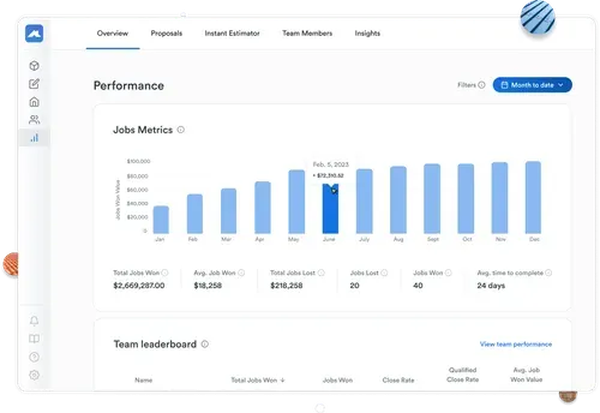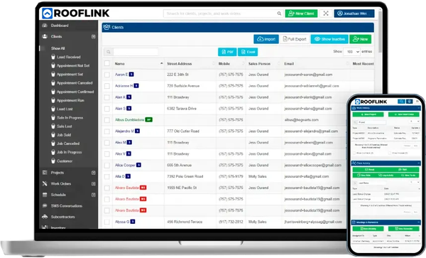 Rooflink is made to streamline the roofing sales process with features like lead creation, aerial roof measuring, weather tracking, automatic job cost estimating, and proposal creation all in one place for one flat monthly rate. Rooflink can store all roofing business data in one place, allowing for a team to focus more on selling and growing.
