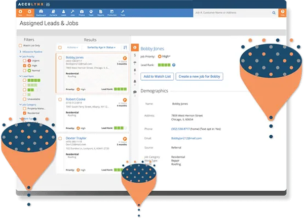 AI Powered Lead Generation: AccuLynx has AI-powered lead intelligence that gets its information on leads from permission-based data, such as demographic, financial, and property-based information. With that data, the AI gives more information on leads and prospects and orders them by how likely they are to buy.
