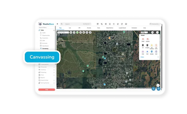 Canvassing Optimization: Rooflink works very well for lead generation with its canvassing tool that takes weather data into account and allows for sales territory to be assigned to reps.