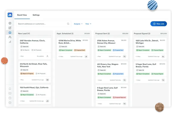 Jobs Dashboard: Roofr offers a jobs dashboard that tracks all jobs at each stage from lead to completed. Users can keep track of all job progress and details, contact, address, price, etc. and automate the whole process.