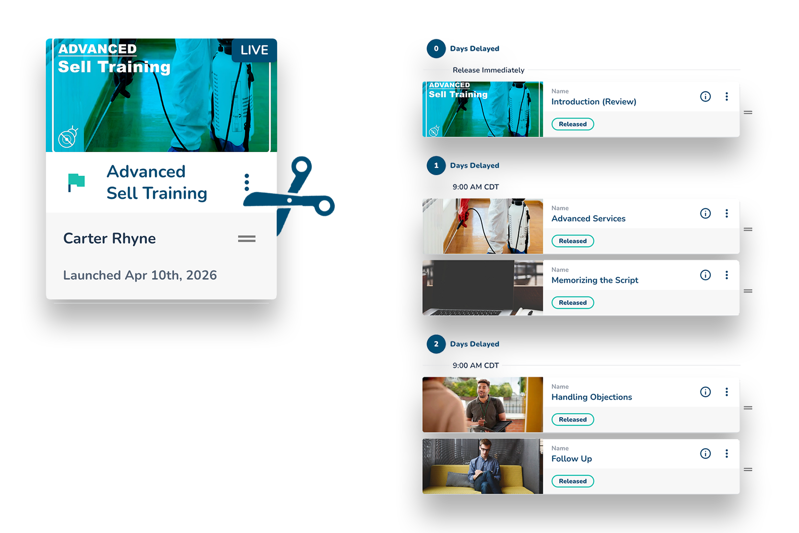 Sync your roster with us. Then easily automate the release of training content based on each learner’s profile or even their previous training performance!